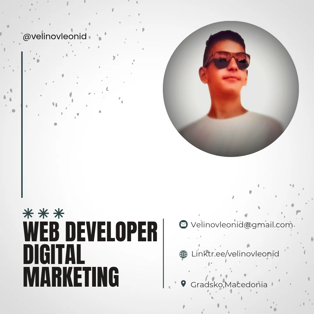I am Leonid Velinov, a passionate Web Developer and Digital Marketing Specialist with a strong foundation in e-commerce and design. As a 4th-year student specializing in the economic, legal, and trade field, I bring a unique blend of technical expertise and business acumen. I have experience creating responsive websites, innovative web applications, and engaging digital campaigns. My goal is to craft user-centered solutions that deliver measurable results. Alongside my technical skills, I value teamwork, creativity, and continuous learning to excel in a fast-paced industry.